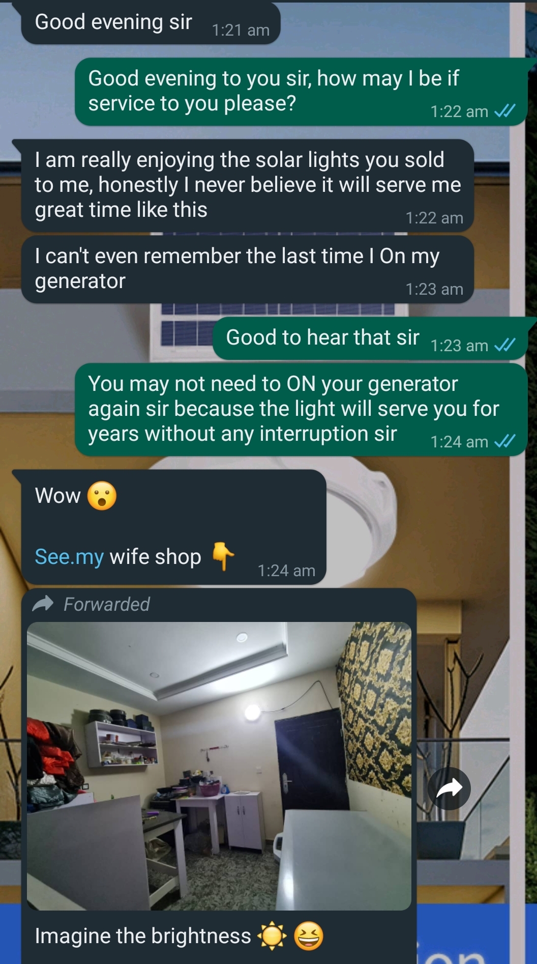 While checking my YouTube account one afternoon, i came across an advert talking about this product that helps   various people across the globe to save cost and provide very bright light at night at no cost. I did my research on it and found out that the product has worked for a lot of people that have used it. I eventually decided to place an order for the product and used it.
