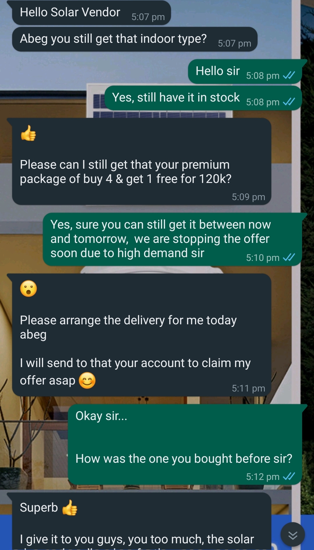 After receiving the order and the few days of using this product, i started seeing the wonders and i don't know when i become the distributor due to its performance and big save in this era of subsidy removal.